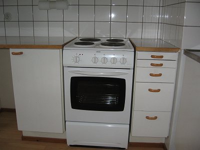 Jääkaappi-pakastin ja keittiön kaapistoja